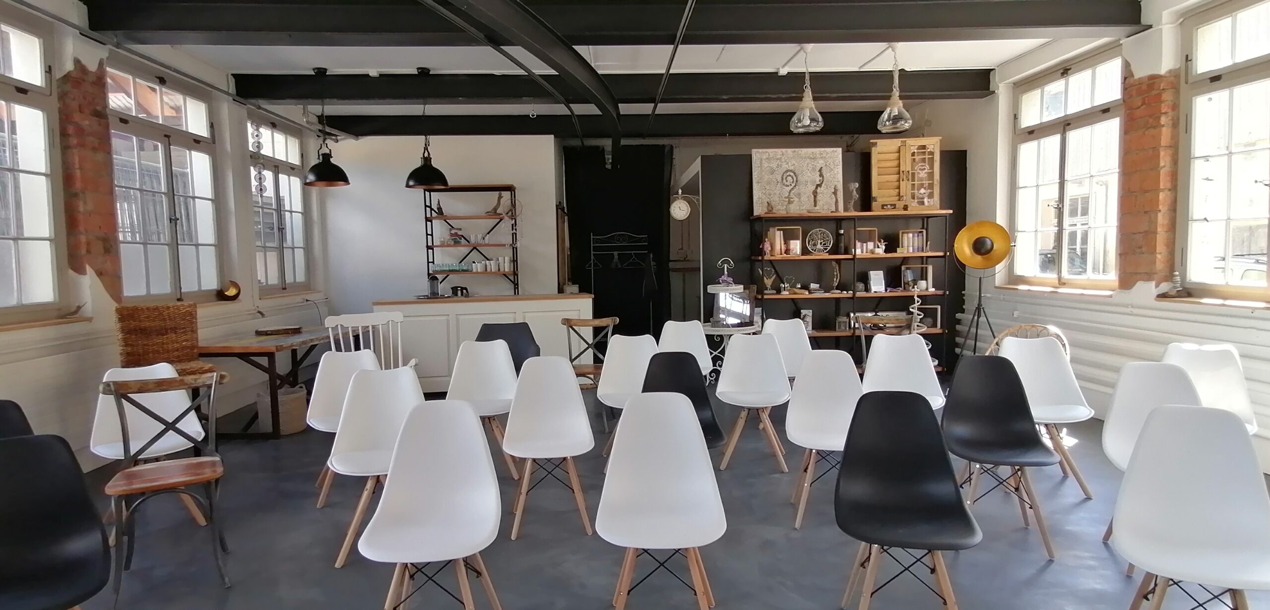 In diesem freundlichen, hellen und stilvoll renovierten Raum im Industriestil, in der ehemaligen Zündhölzlifabrik findest du Raum für dein Wirken: